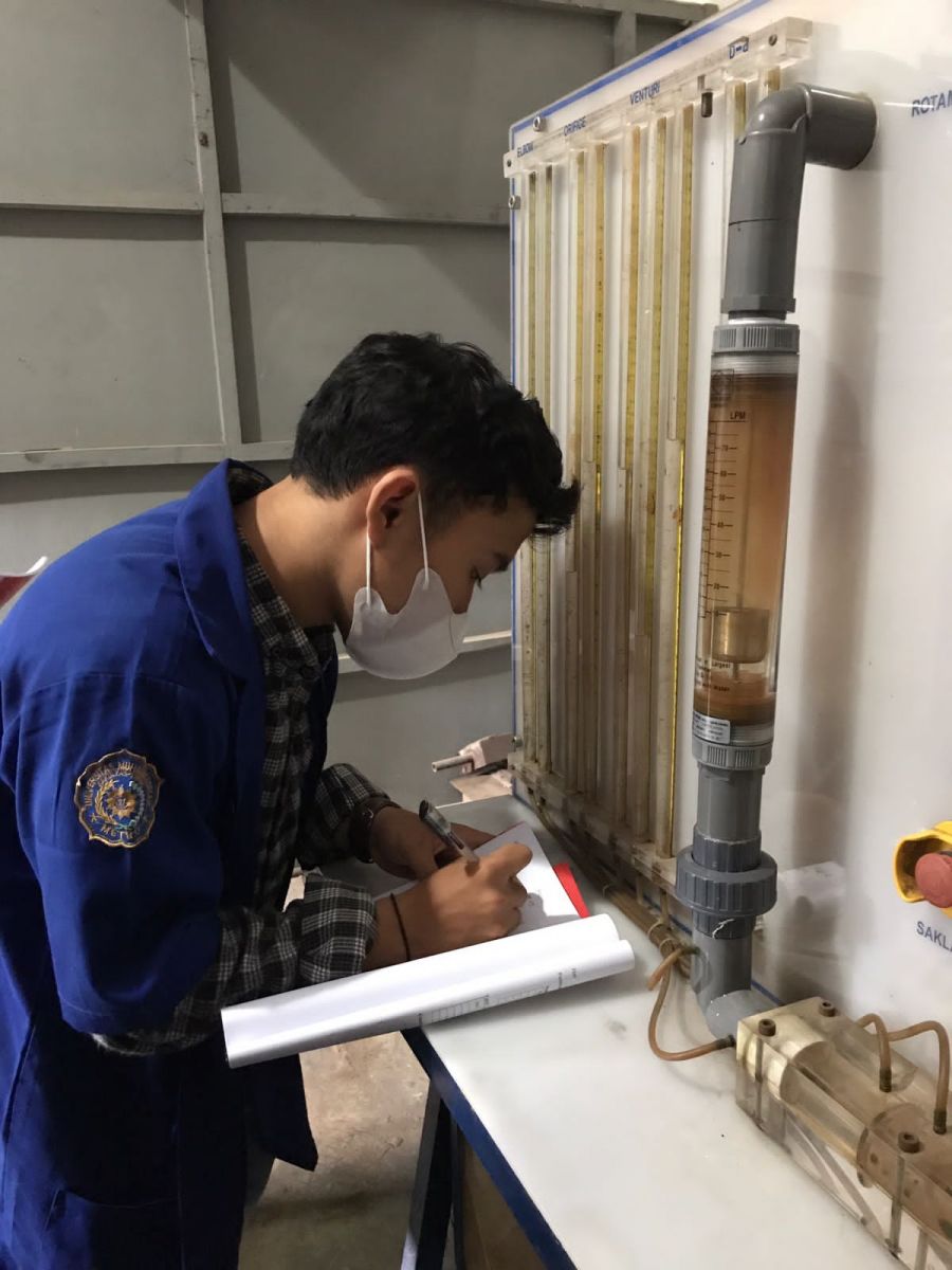 Praktikum mekanika fluida dilaksanakan mulai tanggal 3 Januari 2021 s/d selesai di Laboratorium Teknik Sipil Fakultas Teknik Universitas Muhammadiyah Metro. Mahasiswa yang mengikuti praktikum dibagi menjadi 12 kelompok yang masing-masing kelompok nya beranggotakan 5 mahasiswa dari angkatan 2020.