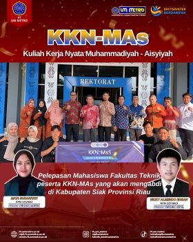 Program Studi Teknik Sipil Fakultas Teknik Universitas Muhammadiyah Metro turut ambil bagian dalam program Kuliah Kerja Nyata Muhammadiyah-Aisyiyah (KKN-MAs) tahun 2025. Salah satu mahasiswa yang mewakili prodi adalah Nicky Almendo Ersan (NPM 22510023) yang akan mengabdi di Kabupaten Siak, Provinsi Riau.