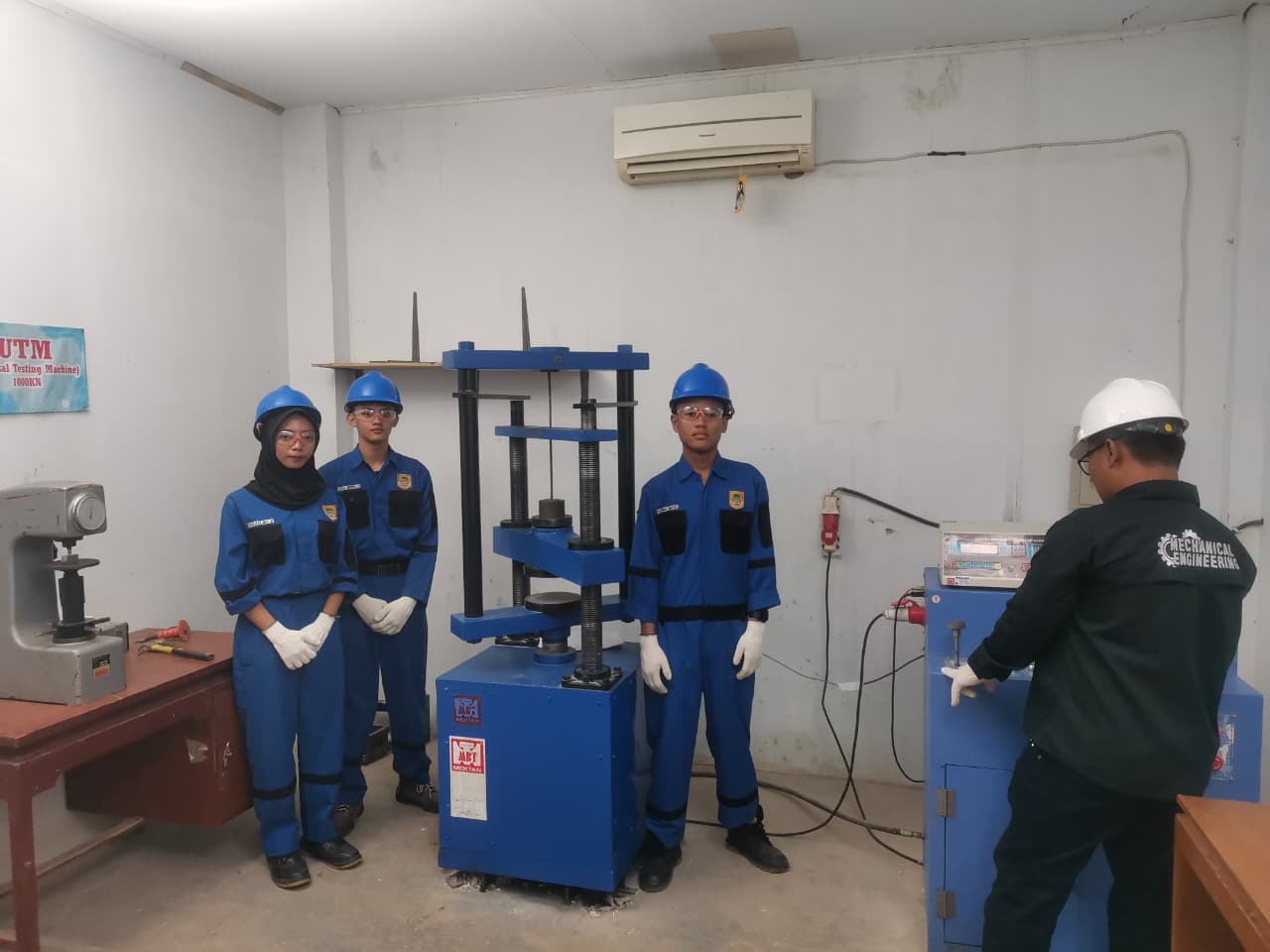 Dalam praktik tersebut, para siswa mengikuti dua jenis pengujian utama, yaitu uji kekerasan besi menggunakan alat Rockwell serta uji tarik besi dengan Universal Testing Machine (UTM). Melalui pengujian ini, siswa mendapatkan pemahaman langsung mengenai karakteristik material, perilaku besi ketika diberi beban, serta standar kualitas yang harus dipenuhi dalam berbagai proyek konstruksi.